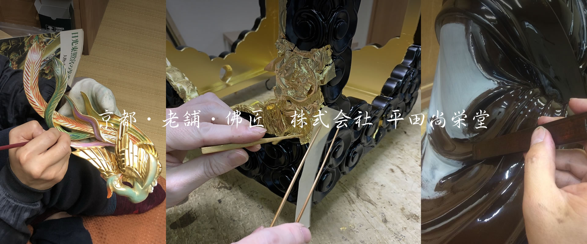 佛具の製作には沢山の工程があり、木地製作から、彫師、塗師(漆)、金箔師、蒔絵師、
